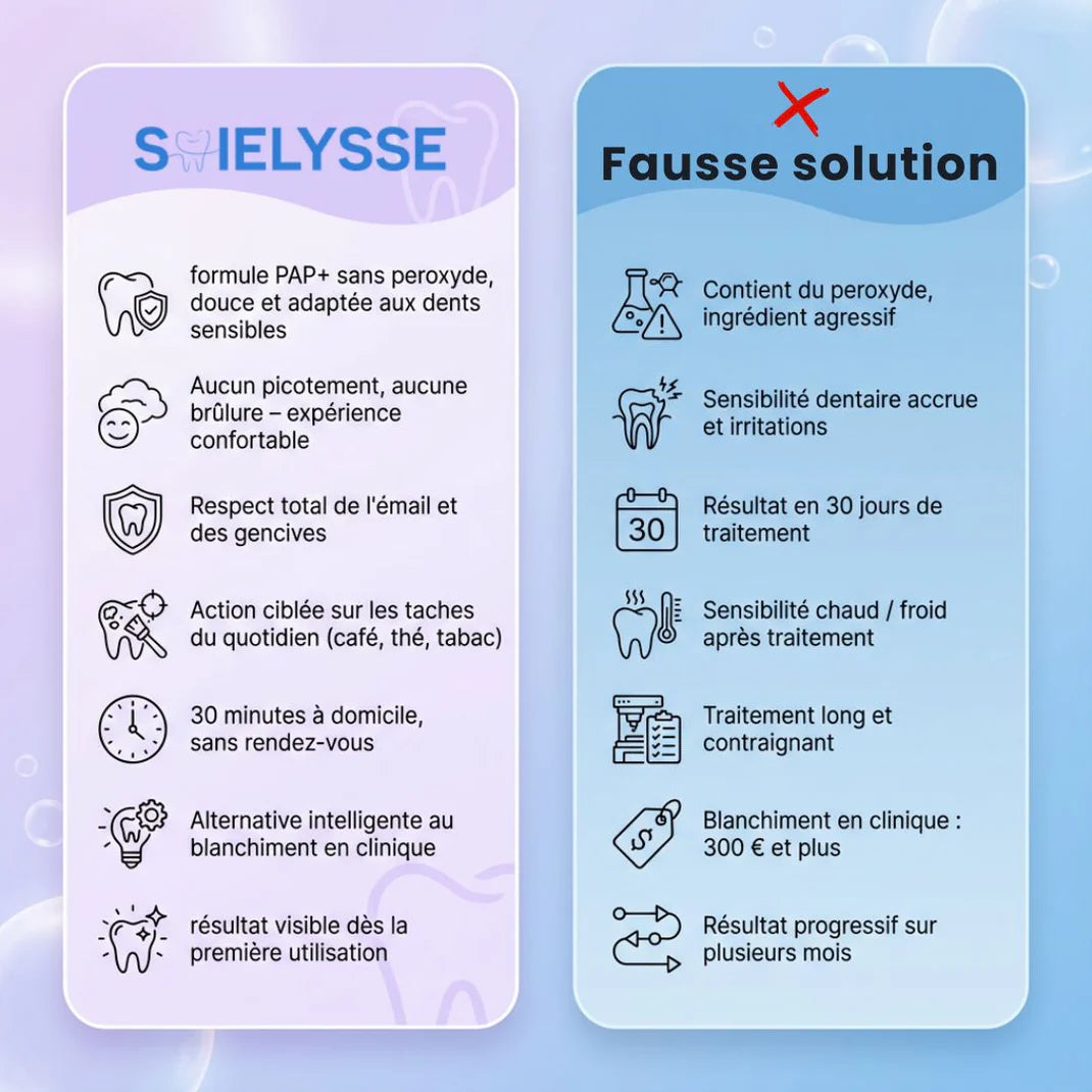 A diferencia del blanqueamiento tradicional con peróxido, que suele ser agresivo, GLOW SOIELYSSE™ se basa en una fórmula PAP clínicamente probada , sin peróxido.